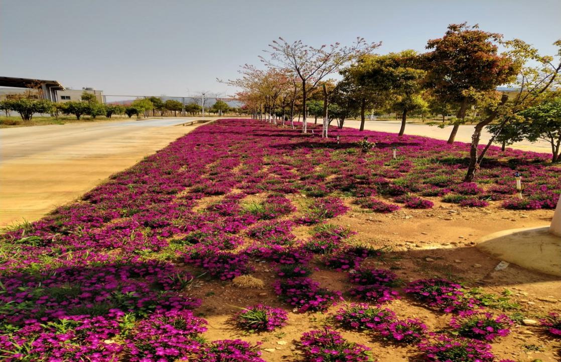 春末夏初,風(fēng)和雨潤。踏入百花山,暖風(fēng)帶著花香撲鼻而來。每天上班,迎接我們的是主道兩旁繽紛怒放的歐石竹紫紅色地面花海。踏著明快的腳步,感覺很美。