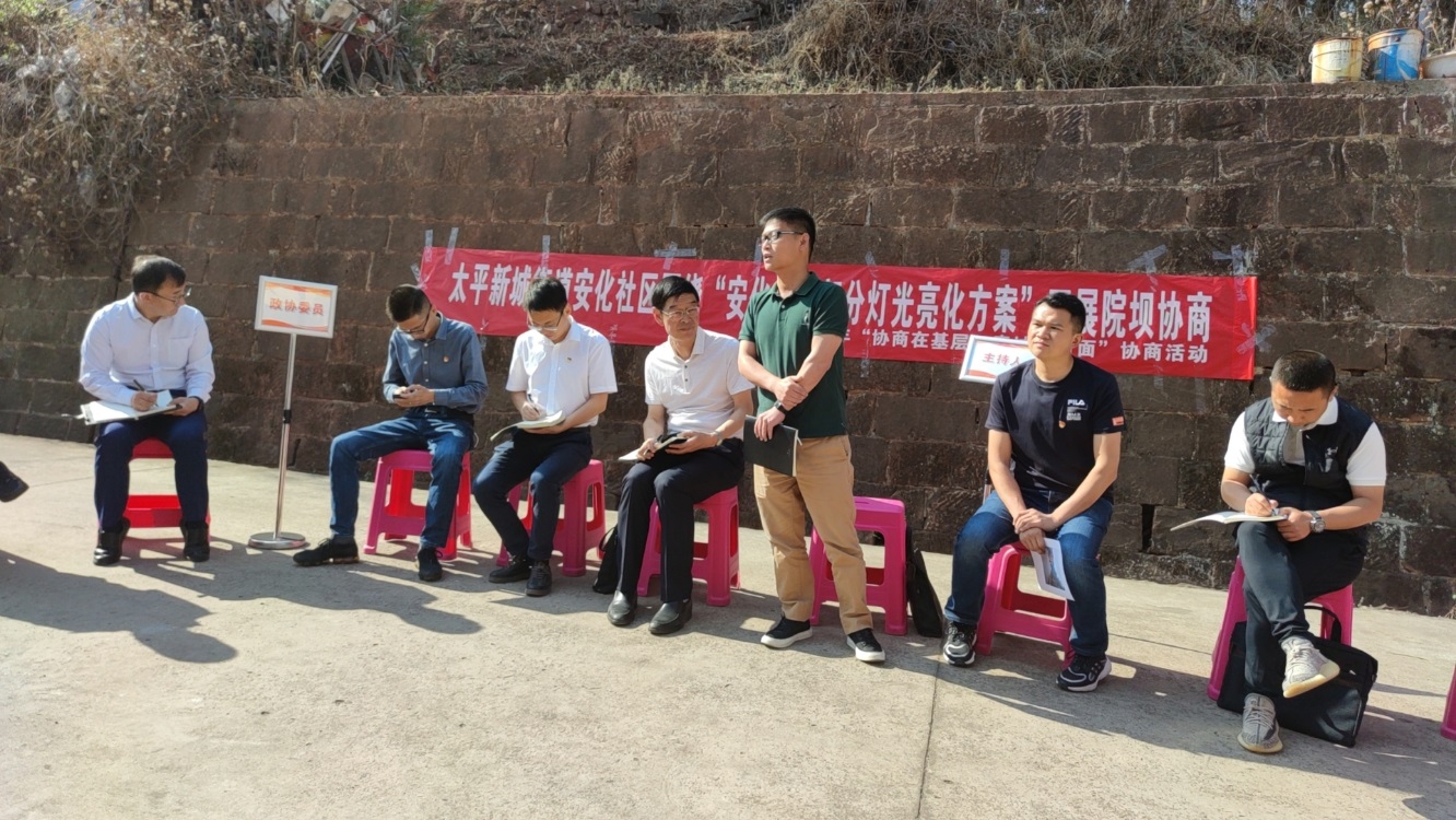 會上,安化社區(qū)負責人對路燈安裝方案進行了介紹,參會人員各抒己見,對該片區(qū)路燈安裝提出了意見和建議。安化社區(qū)和安化物管公司工作人員對住戶提出的涉及路燈照明的其他問題,做了記錄和解答。在安寧市政協(xié)的調研指導下,參會人員一致通過路燈安裝方案。